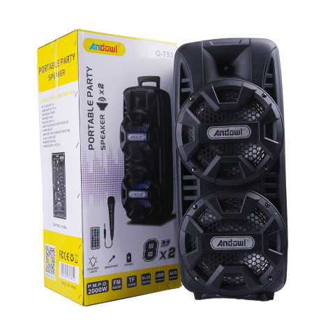Q-T53 2000Watts 8 Inch X 2 Speakers And Has FM Radio,TF,Bluetooth,USB,Aux And Microphone